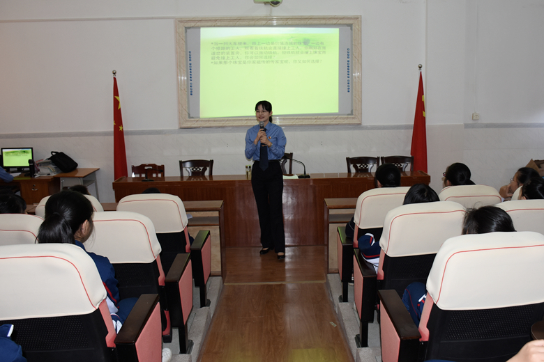 我院干警以“学法、守法、用法”为主题,结合经典案例,通过剖析犯罪原因,详细阐述未成年人易发的不良行为与犯罪之间的关系和预防对策,并为未成年人送上应对不法侵害的“自我防范攻略”。授课中融合了影像播放、图片展示、有奖问答等多种形式,将晦涩难懂的法律知识以生动易懂的形式呈现出来,受到了该校学生的热烈欢迎,他们表示,要自觉抵制各种不良行为的引诱和侵害,远离违法犯罪,做一名知法、懂法、守法的学生。