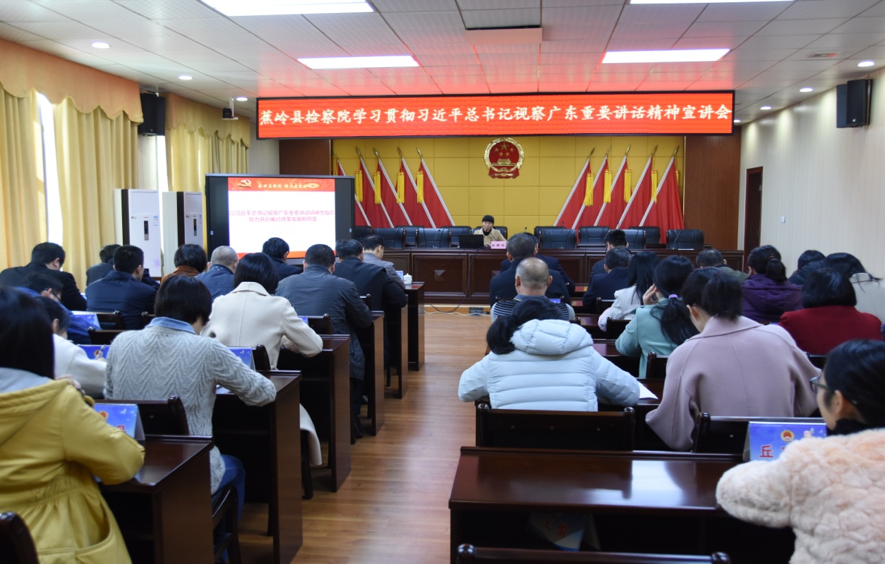 为进一步学习宣传贯彻习近平总书记视察广东重要讲话精神,力求思想再解放,改革再深入,工作再落实,12月17日,我院邀请蕉岭县委宣讲团成员、县委党校高级讲师刘辉凤为我院干警宣讲习近平总书记视察广东重要讲话精神。