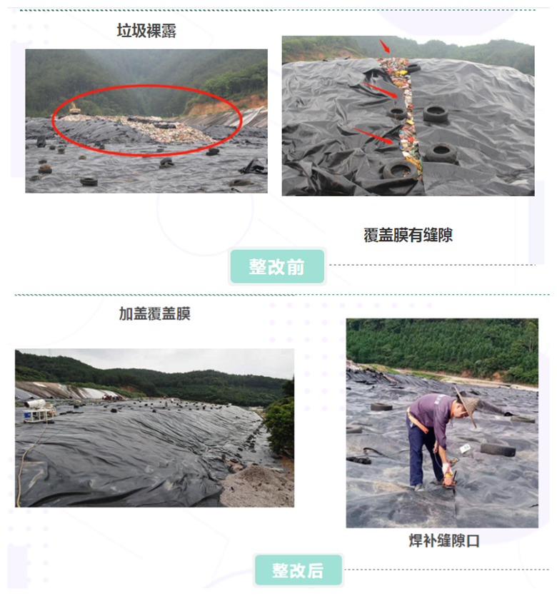 2019年5月,我院民行干警对位于蕉岭县三圳镇横龙村的无害化垃圾填埋场进行实地查看时,发现该场存在除臭灭蝇、垃圾防扬散措施不到位,覆盖膜破损、覆盖膜的部分接缝口有缝隙,未按要求处理渗滤液、未按标准分层摊铺压实垃圾等问题,空气中弥漫着恶臭,损害了周边的生态环境。我院立即启动公益诉讼诉前程序,向县环境卫生管理局等相关职能部门发出检察建议,督促其依法履行监管职责,尽快予以整改。