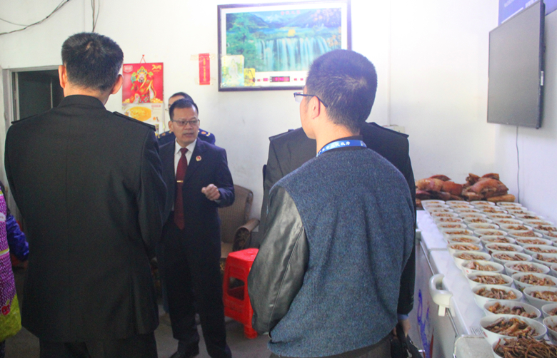 近日,我院公益诉讼干警联合县市场监督管理局执法人员对我县“老字号”食品作坊进行联合检查。重点对现场制作的食材有无做足“三防”(防尘、防蝇、防鼠)措施、使用肉类来源渠道、从业人员有无健康证件等方面进行检查,并对经营者规范家庭作坊操作、食品整洁卫生、加强硬件设施等方面进行细致指导。在检查过程中,发现仍有个别店铺、作坊存在着未设置配餐间、食物来源渠道不明确的问题,检查小组当场予以指正,并针对生产规范、用料安全等方面提出相应整改意见,要求经营者逐一整改落实。存在问题的店铺、作坊经营者表示坚决整改到位,切实履行食品安全责任,让消费者吃得放心,吃得舒心。