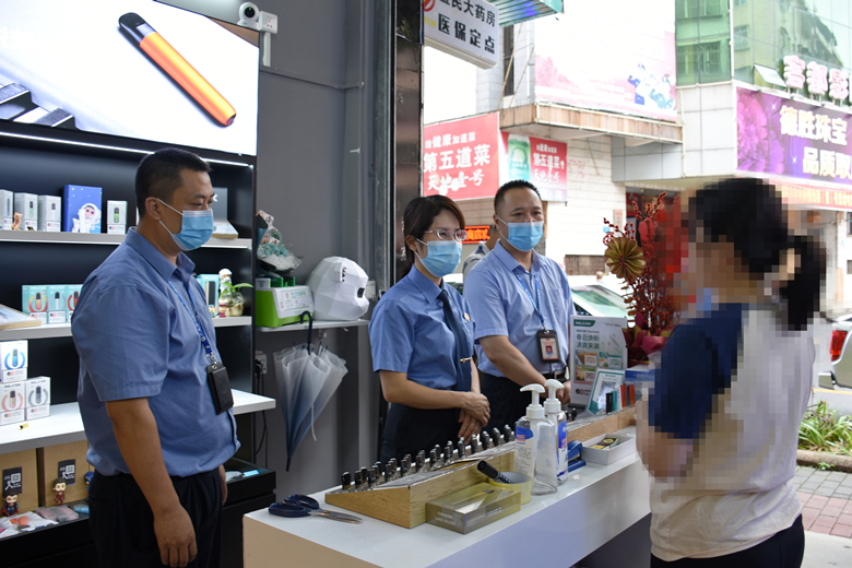 近日,我院联合县市场监督管理局、烟草专卖局到县中小学校周边文具店以及电子烟专卖店、商场等开展电子烟监管专项执法监督,就有无严格执行禁止向未成年人售烟的规定、有无验龄出售、学校周边是否设置香烟销售网点、店铺销售香烟是否具有相应资质等进行检查,由经营者签署承诺书,并告诫经营者规范、诚信经营,担负起社会责任。同时,从保护未成年人身心健康出发,我院督促职能部门依法履职,严格规范电子烟市场,加强监管,让孩子们远离电子烟的危害。