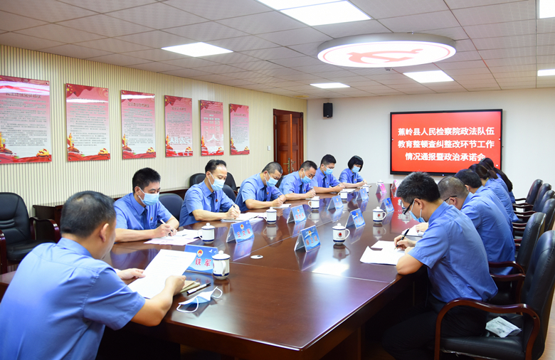 会上,我院党组书记、检察长周铁军通报了我院政法队伍教育整顿查纠整改环节自查自纠、组织查处、专项整治和教育整顿成果转化等工作开展情况,并对整顿成效作出政治承诺。随后,班子成员分别汇报了各自分管领域问题查摆及整改情况,并对分管条线工作作出承诺。