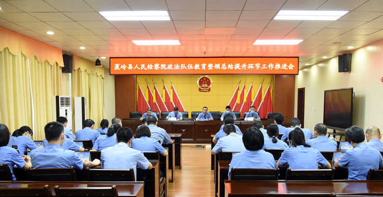 6月23日下午,我院召开政法队伍教育整顿总结提升环节工作推进会,传达学习省、市、县政法队伍教育整顿总结提升环节工作推进会精神,对我院政法队伍教育整顿查纠整改环节的工作进行小结并对总结提升环节的工作作出部署。我院党组书记、检察长、政法队伍教育整顿工作领导小组组长周铁军出席会议并作讲话。
