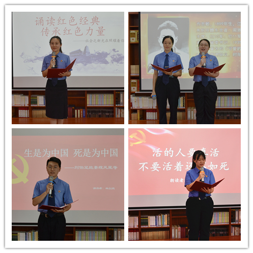 “弟不意现在尚留人间,被押在大庾粤军第一军军部,以后结果怎样,尚不可知,弟准备牺牲,生是为中国,死是为中国,一切听之而已。”“欲求中国民族的独立解放,绝不是哀告、跪求、哭泣所能济事,而是唤起全国民众起来斗争,都手执武器,去与帝国主义进行神圣的民族革命战争,将他们打出中国去,这才是中国唯一的出路。”“活的人要真活,不要活得还不如死”……诵读会上,干警们化身为革命烈士的“信使”,声情并茂地诵读了来自刘伯坚、方志敏、何叔衡等革命先烈所写的红色家书和遗著,生动演绎了战争年代革命先烈的家国情怀,重温了这些绝笔背后的感人故事,展现了对革命先烈的缅怀之情。